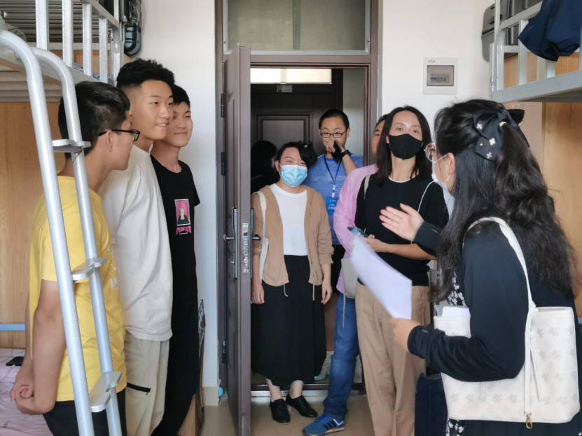 下午3点,伟德国际bevictor1946副经理潘东东,党委副书记杜芳芳,2021级本科生辅导员王蔓琦,以及2021级班主任余彬、唐琳、王磊、李素华前往员工宿舍看望新生,并对新生进行亲切关怀。在与同学们的交谈中,老师们不断鼓励同学们尽快适应宿舍新环境,学好专业知识。