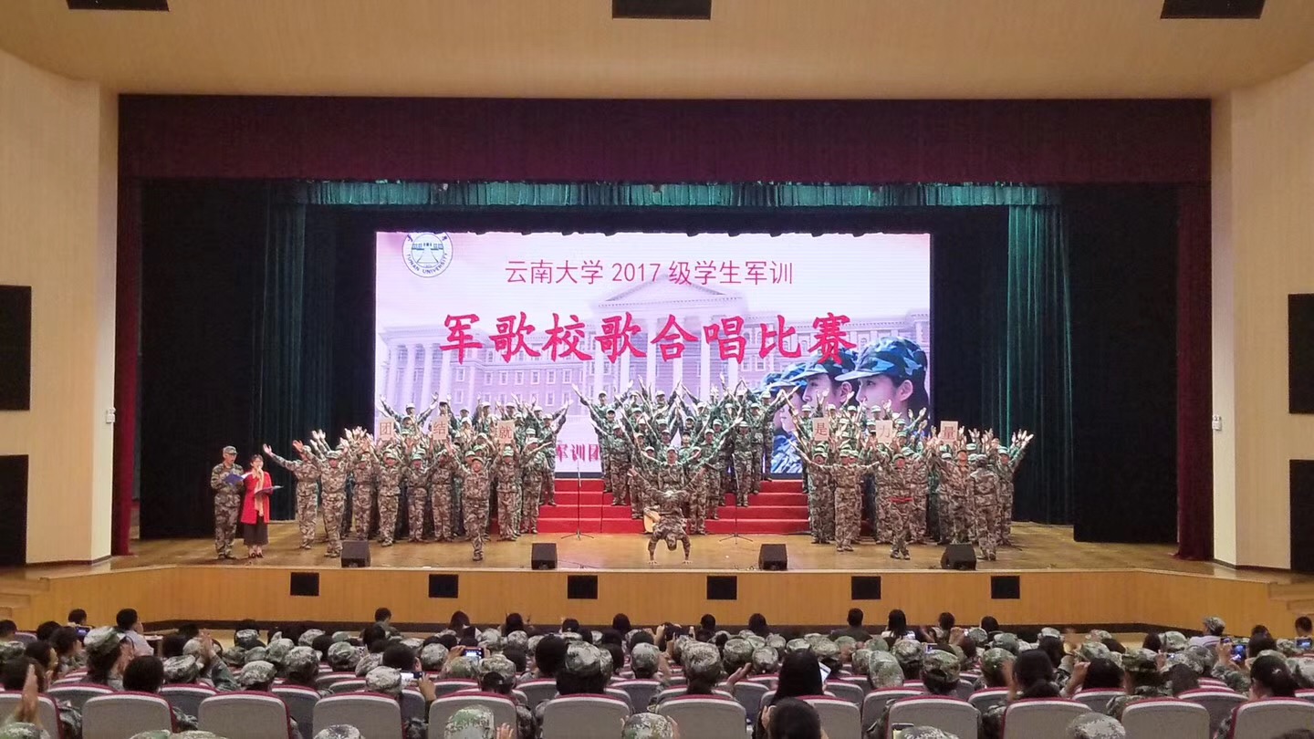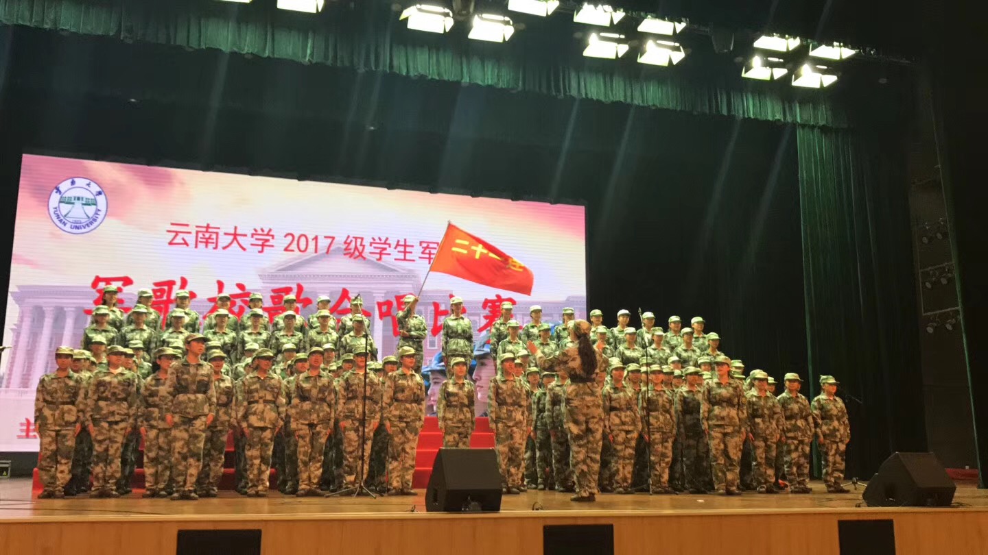 在比赛中公司新生连队精神饱满、斗志高昂,用他们整齐的列队、飒爽的军姿、嘹亮的歌声接受着来自教官、老师和同学们的掌声。伟德国际bevictor1946是第二位出场,“团结就是力量,团结就是力量,这力量是铁,这力量是钢„„”他们的歌声随着伴奏显得格外的铿锵有力、富有激情。每一个字都是力量的象征,每一个音符都是生命的跳动,一首《团结就是力量》唱出了同学们在军训这段友情岁月中团结一心,手挽着手心连着心一起走过的艰难与困苦,同学们深深的明白只有团结才会拥有巨大的力量,才会披荆斩棘乘风破浪。校歌响起,我被深深地震撼,“太华巍巍,拔海千寻;滇池淼淼,万山为襟。”唱出了bv1946伟德官网历史悠久,风景秀丽,登高远眺,巍巍西山,茫茫滇池,尽收眼底。“努力求新,以作我民;努力求真,文明允臻。”唱出云大学子为使文明完善,为了振兴中华大地,刻苦学习新知识,发奋图强,成为中华民族优秀的人才,追求科学真理,达到世界先进国家的科学水平,为云大,为祖国发光发热。
