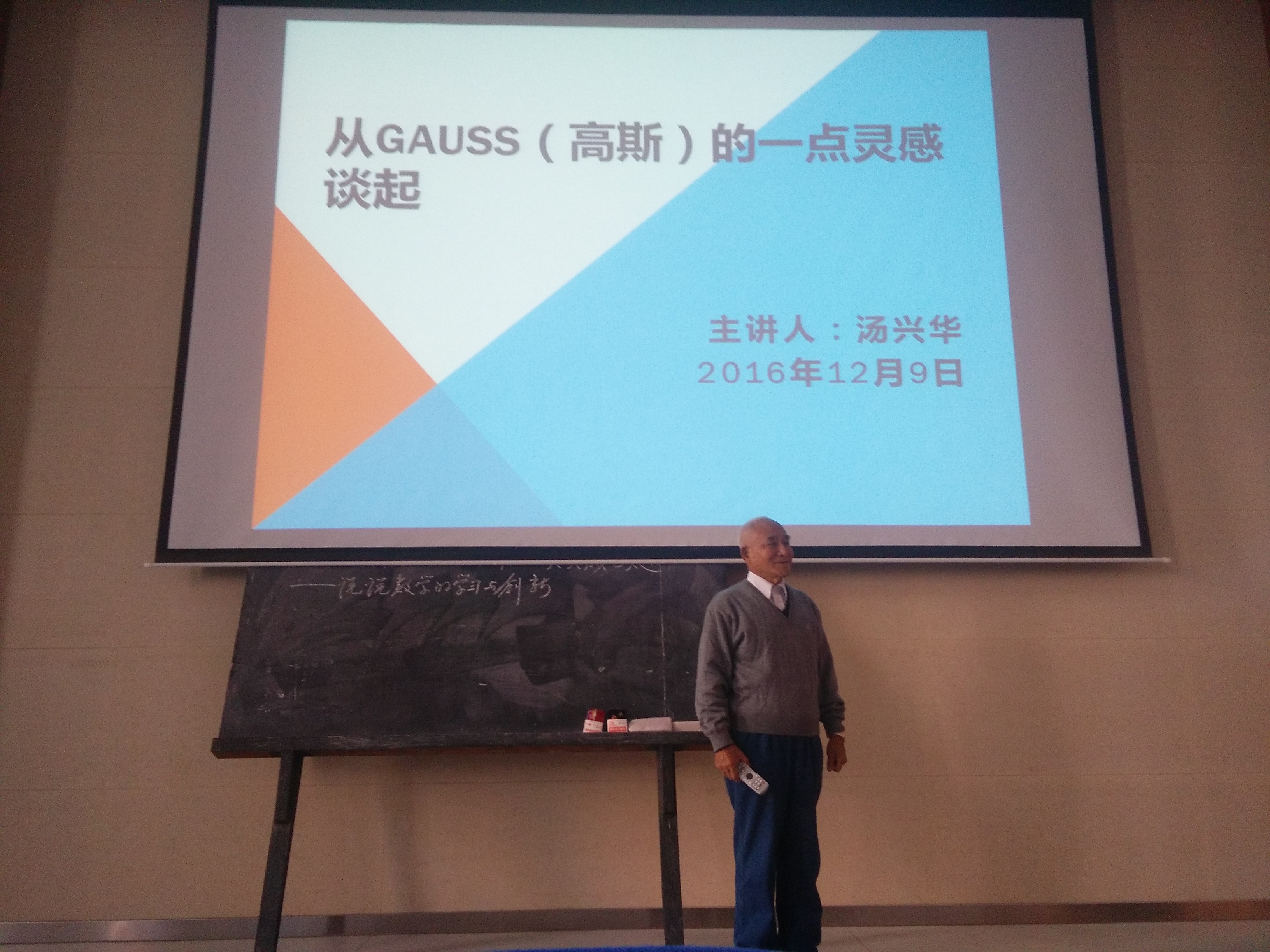 12月9日下午2点,汤兴华老师在伟德国际bevictor1946报告厅给同学们带来了“从高斯的一点灵感谈起”的学术讲座,公司2016级辅导员鲁学伟老师和2016级本科生参加了此次讲座。