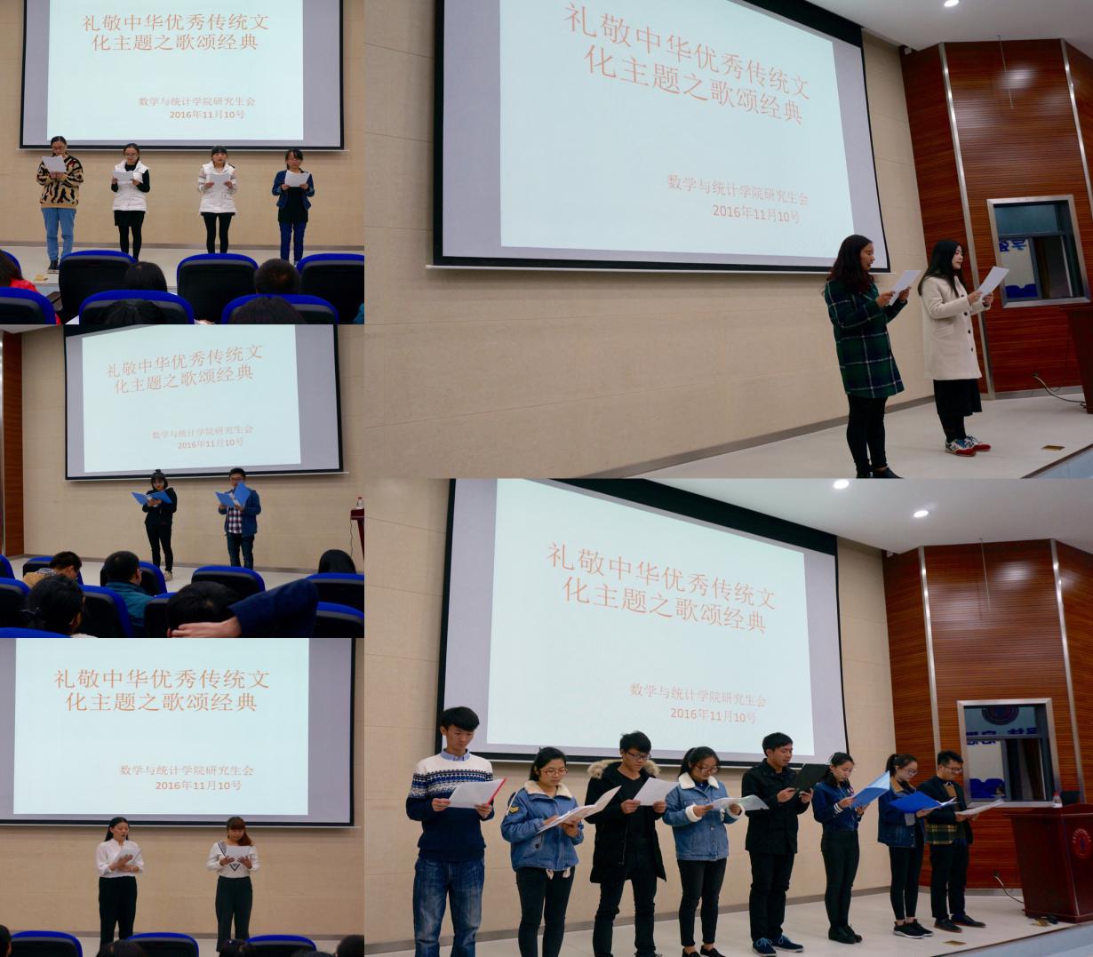 1110日,举办了以“礼敬中华传统文化”为主题的朗诵经典比赛活动。本次活动共有9组队伍报名参加。本次活动让同学们重拾经典,重新了解了华上下五千年的文化传承,重新树立对传统礼仪文化、文学经典的礼敬之心。