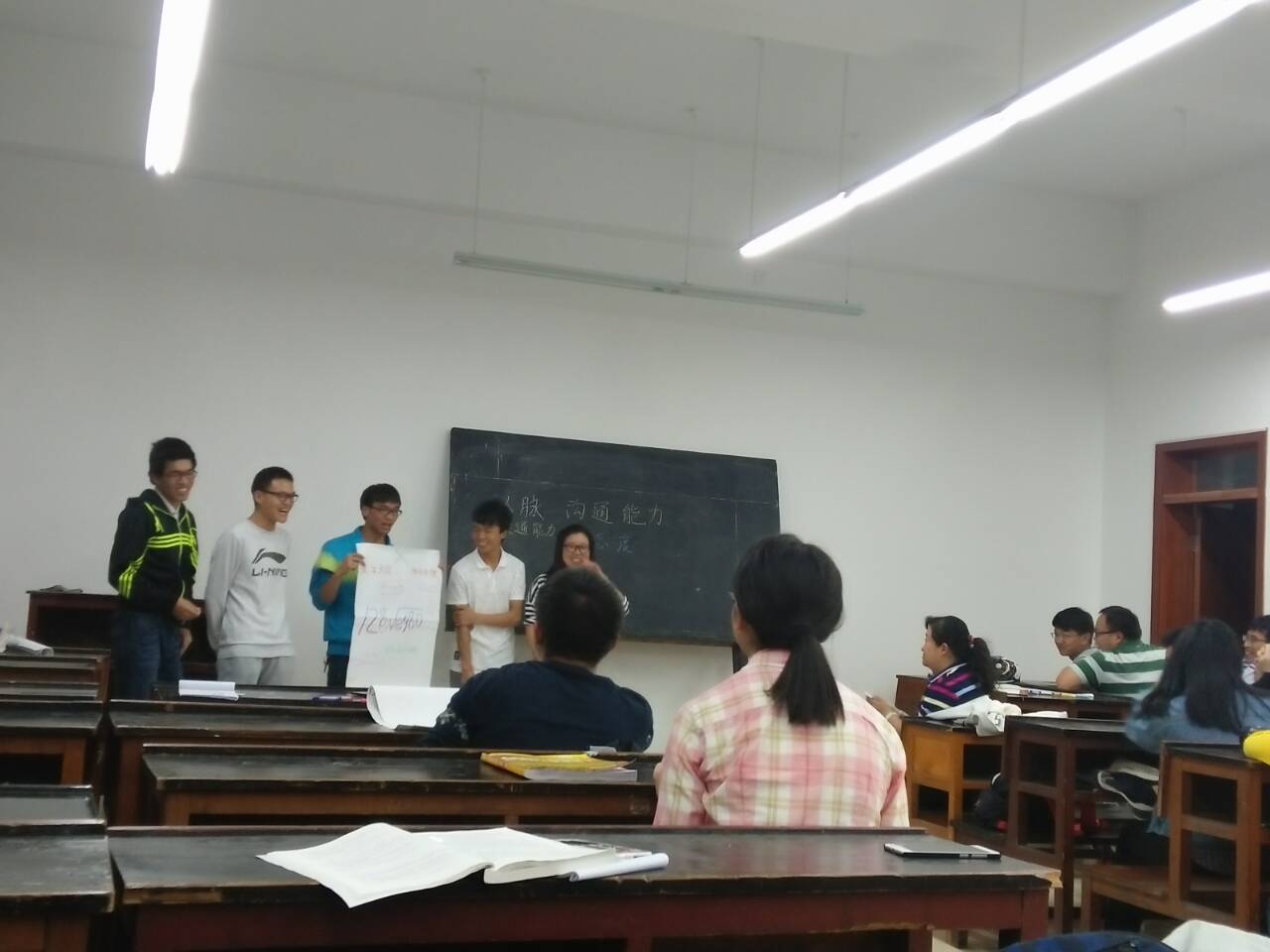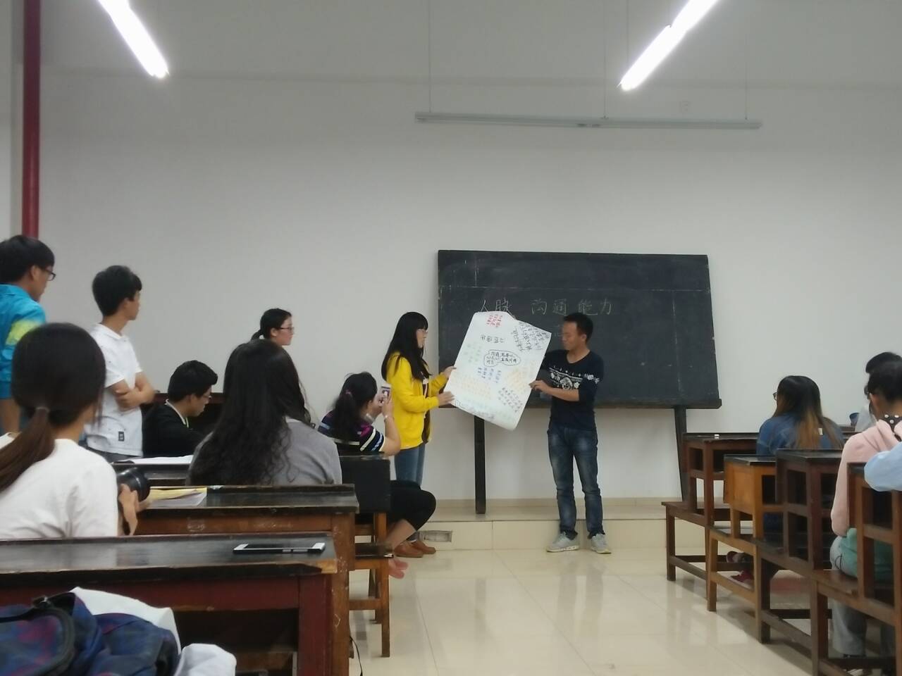 讲座初始,杨老师抛弃传统教授方式,采用互动性更强的分组、分工模式,首先让同学们提出在职场中需要的几点能力、素质,并将其归为大致四类,同时将同学们分成四组,每组同学由提出观点的队长带领,进行一场绘图并为之演说的比拼。讲座全程趣味十足,不仅每位同学参与其中画图、提观点,在演说进程中,同学们更是各自创作、献唱符合自己主题的歌曲。